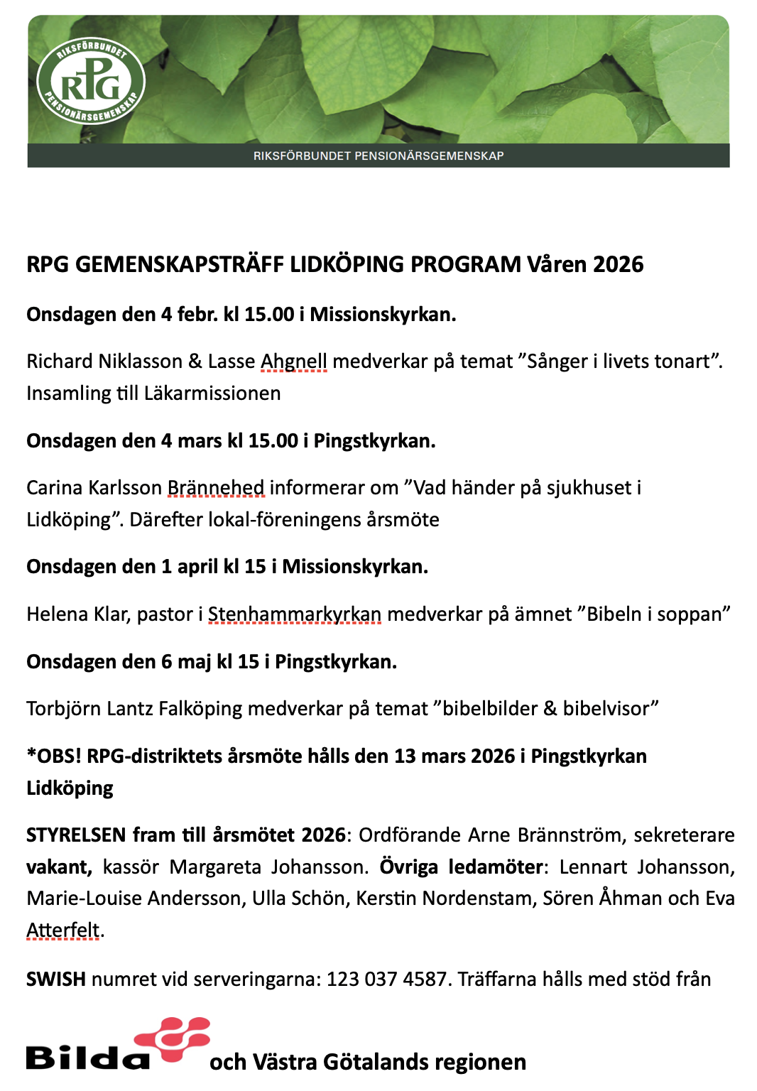 RPG anordnar träffar i Lidköping och ibland hålls träffarna i Pingstkyrkan Lidköping.